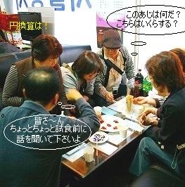 ![]() 到着 フロント・・ホテルマンは大体の人が日本語を話します。1室だけ部屋に入れたので、全員の荷物を運び込む。 伸さんに電話しようとしたら、伸さんの後輩が1時から待っていてくれ、直ぐ昼食のチョンスジョンへ向かう。 |
