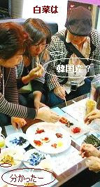 ![]() キムチ&のりの試食・・値段交渉が続く・・笑いの連続! 春の長雨で白菜の収穫が悪く、国産は10倍?中国産が入ってくるそうな。ここのは韓国産 |