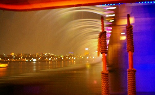 ![]() Pm7:30発 遊覧船はいくつもの橋をくぐって虹の噴水の橋へ・・バイキング船でした |