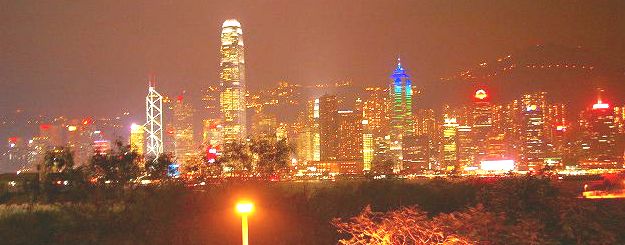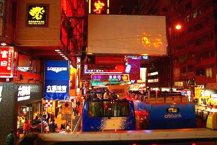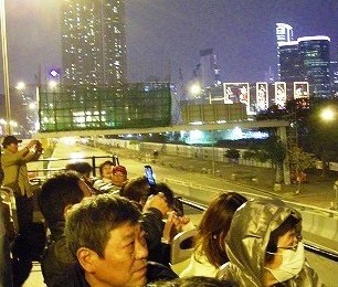 ![]() 庶民の屋台売り場が延々と続く! 香港島の夜景をバスの上から |
