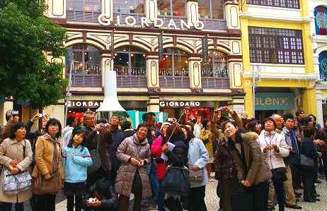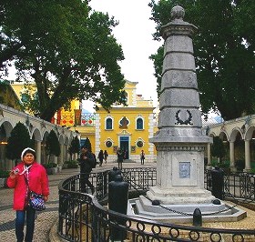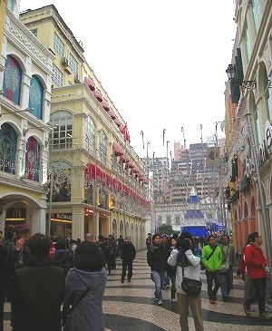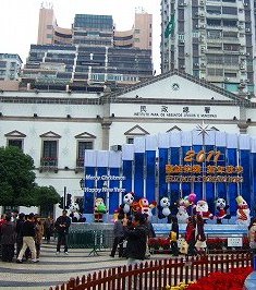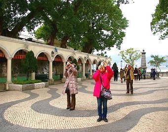 ![]() マカオ半島の街の中心となる広場がセナド広場で、この建物群も世界遺産。 波打つモザイクタイルはイタリア人技術者の作品。 |