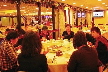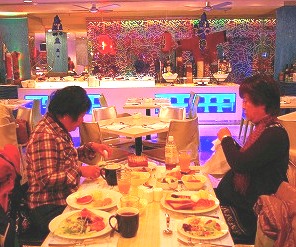 ![]() ![]() 「裕福そう姉妹」の妹の自慢話を姉が報告・・・・我々はうなずいて、お構いなく食事だわ! |