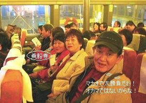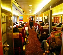![]() ![]() ![]() 船の中はキレイにされています!(座席指定)*「一旗当てるぞー」と意気込む香港の人も多数いたぞ。 |