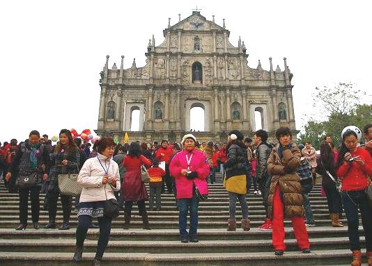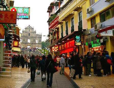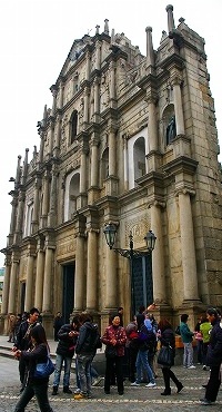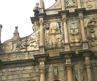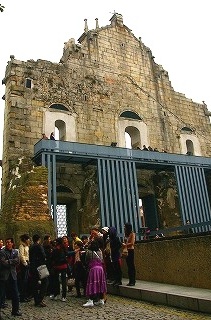 ![]() ![]() ![]() 聖ポール天主堂(大三巴牌坊) マカオの中心部、モンテの砦の西側に残されている。 1637年に建てられたキリスト教会で、1835年に起きた3回目の火災でファザードのみを残して焼け落ちた。 |