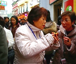 ![]() トップバスから降りて自由行動30分(油物のお店の前で、臭いにYasukoさん・・「オェー!」の連発! |