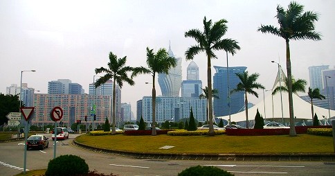 ![]() マカオのホテル群(カジノ) 中央の一番高いグランドリスボアが目に入る。地上52階、高さ258mのカジノとホテル |