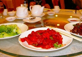 ![]() 三大珍味のあわび・フカヒレ・ツバメの巣の豪華な夕食 |