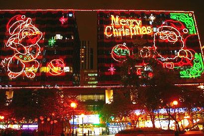 ![]() ビルのイルミはまだクリスマスです。 オープントップバスに乗り込みました。 |