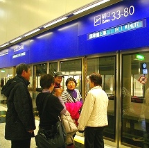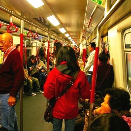 ![]() 日本とか韓国と同じで、とても綺麗で近代化されている。ホームには透明な壁があり、電車が来ると扉が開く。 |