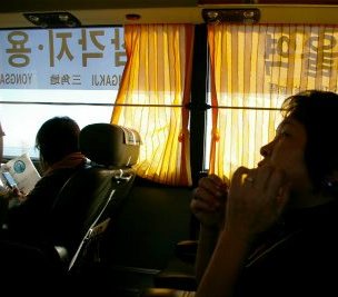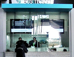 ![]() チケット売り場(14,000ウォン)* コーププレジデント乙支路まで教えられたハングルを読み上げ購入 係りの人が後ろを指さすので、売り場が違うの?振り返るとバスのステップに仲間が足をかけていた。 |