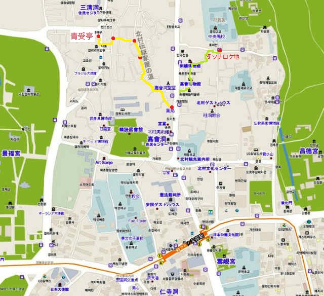 ![]() ![]() 三清洞(サムチョドン)の青受亭へ運転手は初めてなので近くでは私が案内 料理はマシタ〜! |