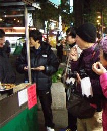 ![]() ![]() ![]() 東大門までタクシーで移動!繁華街をホテルまで600m歩く 9:45 屋台が並びにぎやかです |