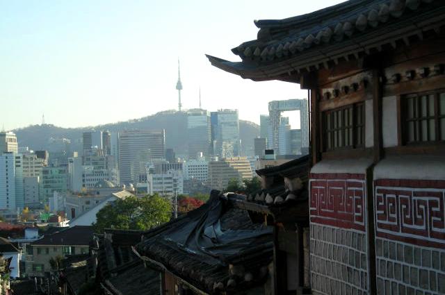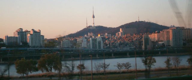 ![]() 初めて自分たちで空港から乗り継いで来て、ソウルの街が見え安堵する。 |