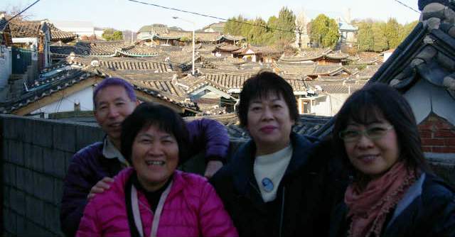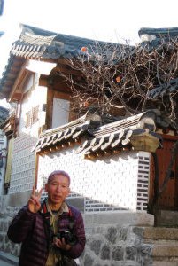 ![]() 昼食後、北村韓屋を散策 昨年の東側より今回の西側は、古き韓国の風情が楽しめました。 地元の若者に頼んだら「3.2・キムチー!」と言って撮ってくれました。 |