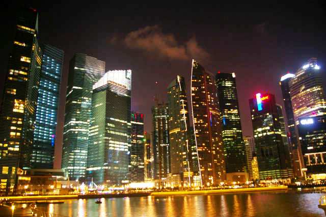 ![]() 地上200mの最上階マリーナ・ベイ・サンズは 3棟のタワービルで構成され、上が船のような建物で繋がっている。 |