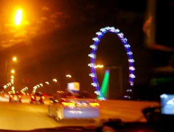 ![]() 空腹と疲れでふらついてきた!TAXでホテルまで・・・明日乗る大観覧車もボケて見える。 |