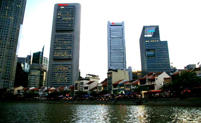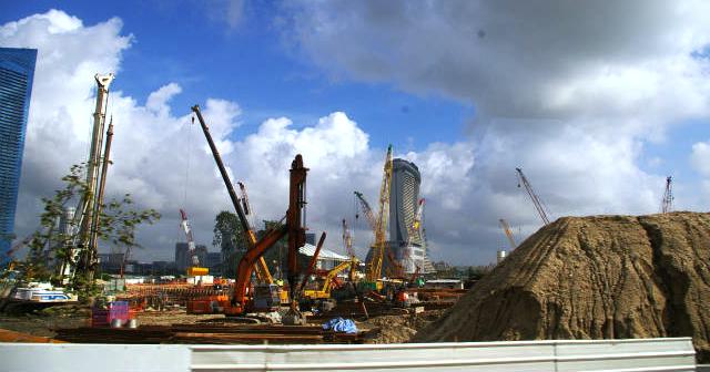 ![]() マリーナ・ベイ・サンズを見上げて開発が進む(ここには高層ビルが立ち並ぶ) |