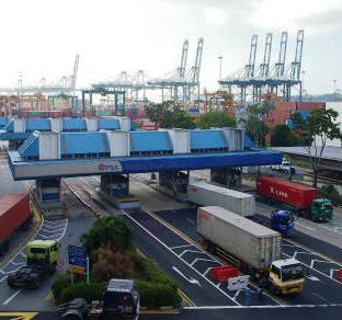 ![]() シンガポール港は、コンテナ貨物取扱量では香港と並んで世界トップの座を競う アジア最大級のハブ港で、1日6万個のコンテナを扱う。 |