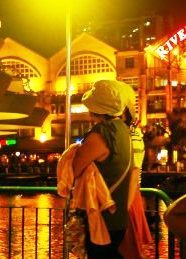 ![]() 川面に映った明かりがリバーサイドをロマンチックな雰囲気に演出 |