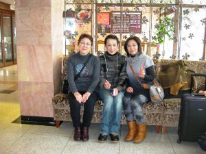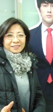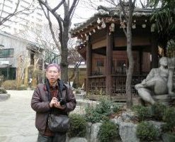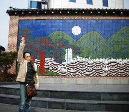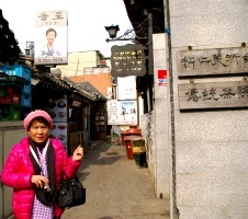 ![]() ホテルのロビーで迎えを待つ 右)仁寺洞で歓喜のポーズ |