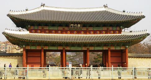 ![]() ![]() 昌徳宮(キョンボックン)の正門である敦化門(トンファムン)は、 ソウルの宮殿に現存する最古の正門で、1412年に建てられ、1609年再建。 |
