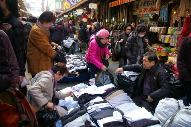 ![]() 崇礼門徒歩5分の所に位置する。 安くて丈夫なTシャツを買うアジマ達 |