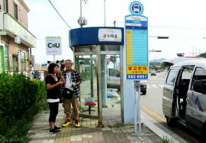 ![]() ![]() 金海キメ国際空港(釜山)に無事到着>案内所で地図をもらい、TAXI乗り場へ向かう。 日本では先頭の車から乗るが、どのTAXIも呼び込みをしているのに驚いた? たまたま模範タクシー(半額の?安い一般TAXIが普通)が、先頭であったから乗り込む。 |