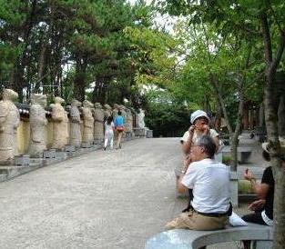 ![]() ![]() 「海水観音像」の広場から美しい海岸を見下ろす。高さ10mの仏像は一つの石から作られ、韓国最大級の仏像。 |