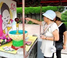 ![]() ![]() 色々な仏像が現れる 水をかけたり コイン投げもあったり 日出岩からは海が広がる |
