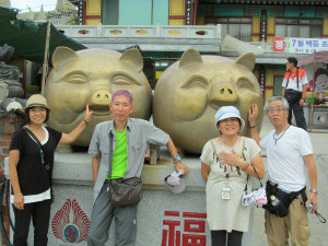 ![]() 黄金は福を招きよせるのか、豚と布袋さんも金ぴかであった。 |