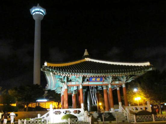 ![]() 龍頭山公園(ヨンドサンゴンウォン)の釜山タワーと釜山市民の募金によって作られた鐘 |