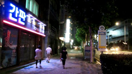 ![]() Pm11:05 ちょびっと足取りも重く、人通りも途絶えた「看板屋」の前を歩く・・・ホテルはまだか? 2万歩は歩いたね |