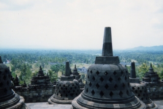 ![]() ボロブドール遺跡(8〜9世紀) 土台が113mの正方形、 高さ35m、方形5層に72基ストゥーバ |