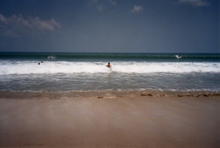 ![]() クタビーチ(ホテルの前)は有料(\10ぐらい)でした 砂浜に横たえていると、5〜6人で手足のマニキュア・ オイルマッサージ・三網と寄ってくる(結構高いんだわ) |