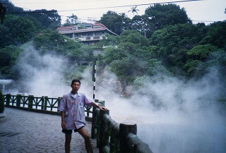 泉質は硫黄泉で、温泉は熱湯が噴出し、ここで茹でる。 ![]() 入り口で生卵・生とうもろこしを買い(かごを貸してくれる) 温泉の熱湯でゆでて食べる。 地元の人達はいろんな物持参で食べとったねー。 熱海温泉があったので二人して入るも、 熱すぎて湯船に入れず断念! |