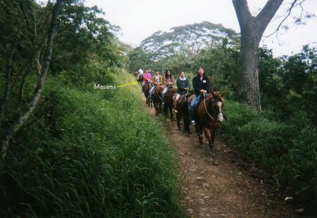 ![]() こんな風に並んで行きますが・・・時々外れる場合もあります・・そうすると大変だー! 30分位の行程です!でも海が見えたり・山が見えたり景色はバッグン!・・・振り返り、馬上から撮影。 |