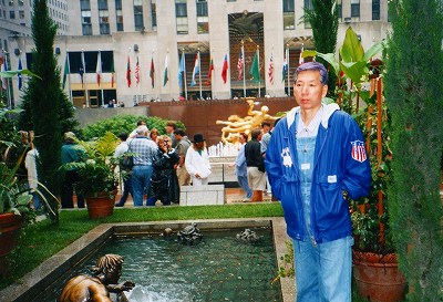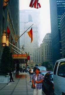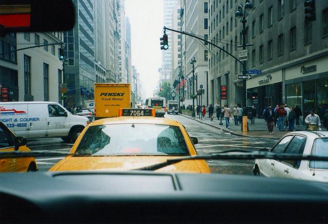 メトロポリタン美術館からイエローキャブ(TAX)に乗り5番街を走る・・・映像で観たUSAの風景だわ。 メモした番地を*?*?と話したが通じーせん!メモを渡したがねー! |