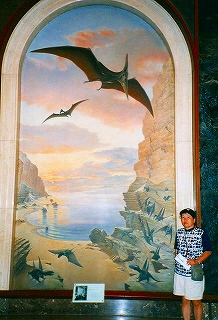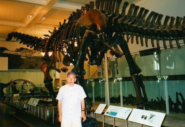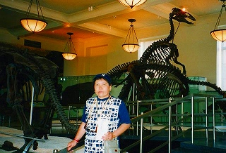 学術院の明光さん:本物の恐竜のでかさに驚いたなも〜! |