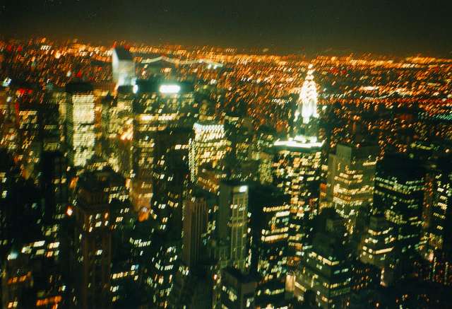 明かりは文化の象徴なのか?クライスラービルディング(白く三角の建物) 写真は北東方向です。 |