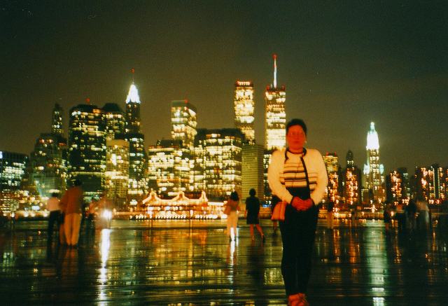 小雨に濡れた地上も演出!ブルックリンよりマンハッタンの夜景が・・・旅の思い出にページを重ねる。 |