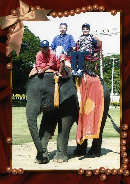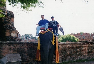 ![]() 象に乗って記念写真を有料です!象に乗った感想は見晴らし抜群で適当なゆれがいいなー! 象使いの人と象は信頼しっきっている感じでした。 |
