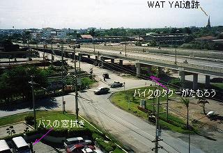 ![]() クルンシ・リバーホテルの部屋からWAT YAI見える 二輪バイクタクシーに驚く |