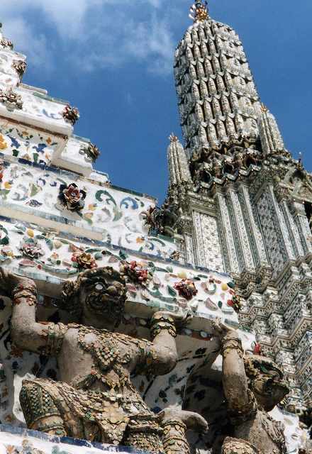 ![]() 暁の寺(ワット・アルン):ラーマキエン物語の登場人物は装飾がとてもきれいで豪華!(修復中でした) |