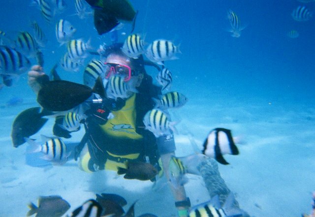 水深5Mしかないのに、耳が痛い(空気抜きがなかなか出来ない)やっと出来て魚と遊ぶ! |