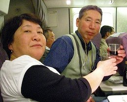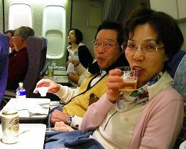 ![]() 特別企画のチョコで出来たピザの斜塔に感激! 6時間40分のフライト! いよいよ!機内へ |