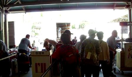 ![]() 荷物はどこだ〜?ラケットは凶器になるから預けてきました。 |