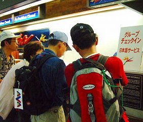 ![]() 余裕の二人です!なにせ海外4回目の夫婦フランス>イタリア>チェジュ島>ハワイで〜す。 乗り継ぎの途中で,、ハワイ島コナ空港へのチケットは?帰りのチケット引換券は預けておく |