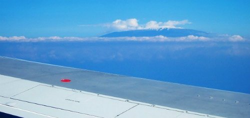 ![]() ハワイ島」のマウナ・ケア(4,205m):マウナ・ロア(4,169m)どちらでしょう? Yasukoさん撮影 |