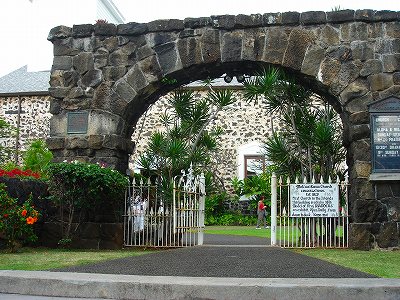 ![]() モクアイカウア教会 教会の門は溶岩か珊瑚のアーチ? Yukuoさん撮影 Mokuaikaua Churchコナタウンを象徴する大きな教会で歴史的建造物です(1823年ハワイ最古)。 サンゴ石で作られた外壁とハワイアンコアウッドを多用した内観はノスタルジックな懐かしさを感じる。 |