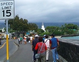 ![]() とんがり屋根のモクアイカウア教会まで散歩。ホテルの横はもう海で、見た目寒そうだが泳いでますねー! |